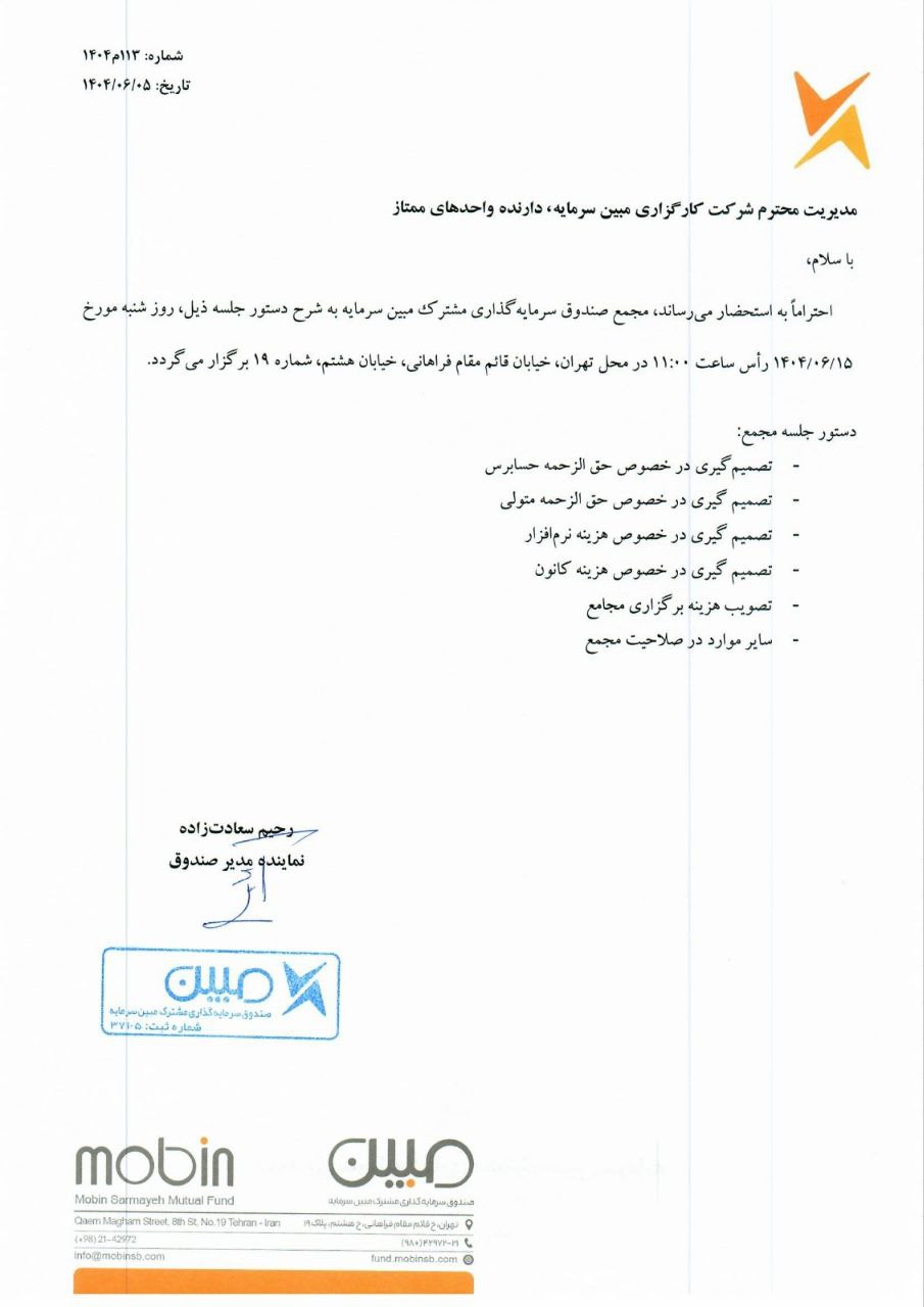 آگهی دعوت به مجمع صندوق 1404/06/15 ساعت 11:00
