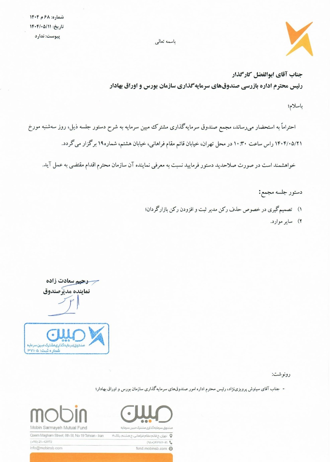 آگهی دعوت به مجمع صندوق 1404/05/21 ساعت 10:30