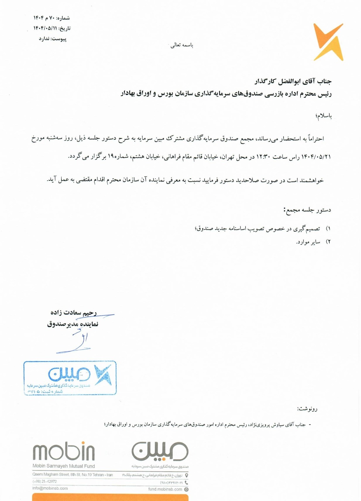 آگهی دعوت به مجمع صندوق 1404/05/21 ساعت 12:30